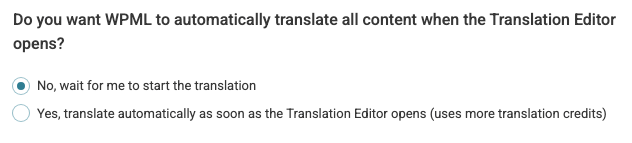 - Find this option: Do you want WPML to automatically translate all content when the Translation Editor opens?